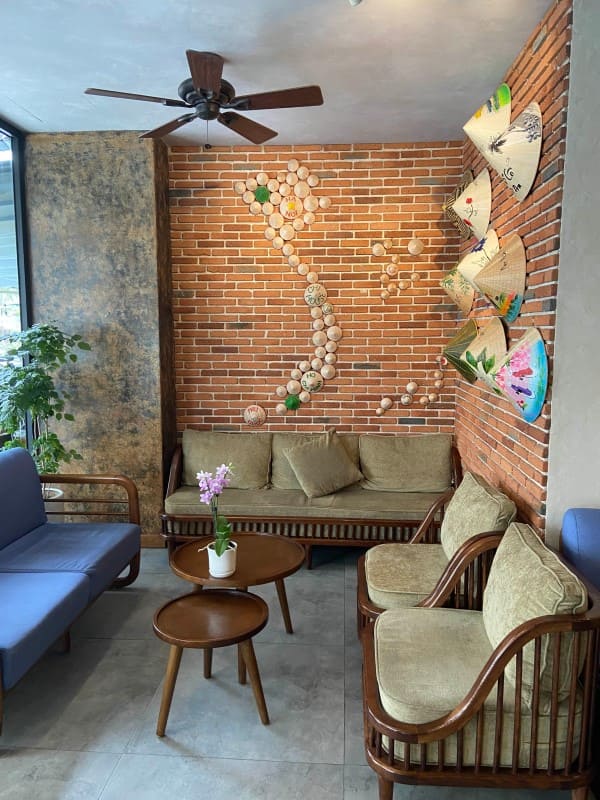 다낭 치하우스에 도착했을 때, 첫인상이 정말 좋았다. 나무와 돌로 이루어진 세련된 외관이 특징인데, 초록초록한 식물들과 잘 어우러져 있었다. 사진에서만 보던 열대 식물들로 장식된 예쁜 건물이 바로 우리 숙소라는 생각에 기분이 한껏 올라갔다. 건물 안으로 들어서니 따뜻한 조명과 우드톤 가구, 그리고 베트남 특유의 감성이 아기자기하게 녹아있는 로비가 보였다. 체크인 카운터에 서 있던 직원들이 친절한 미소로 환영해 주었다.